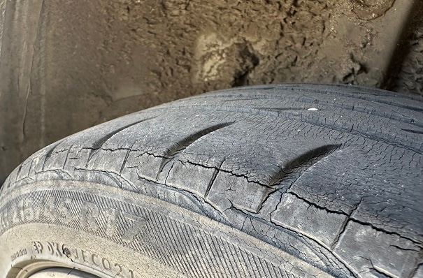 ヒビ割れも凄いし適正空気圧ではない状態で走っていたのか
